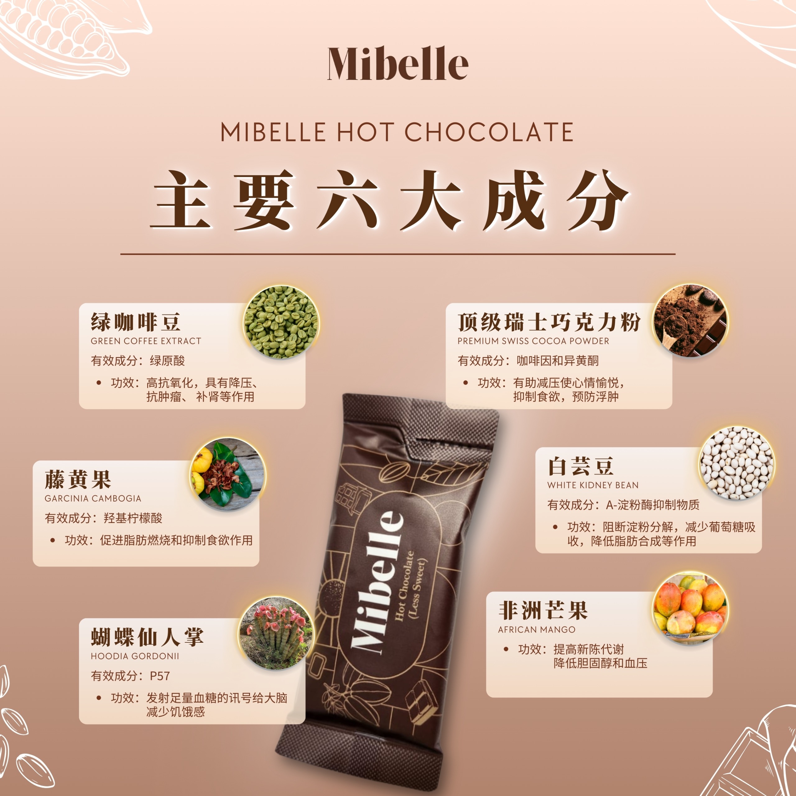 MIBELLE HOT CHOCOLATE SLIMMING (less sweet)(微甜巧克力 - 瘦身巧克力) 20包/盒