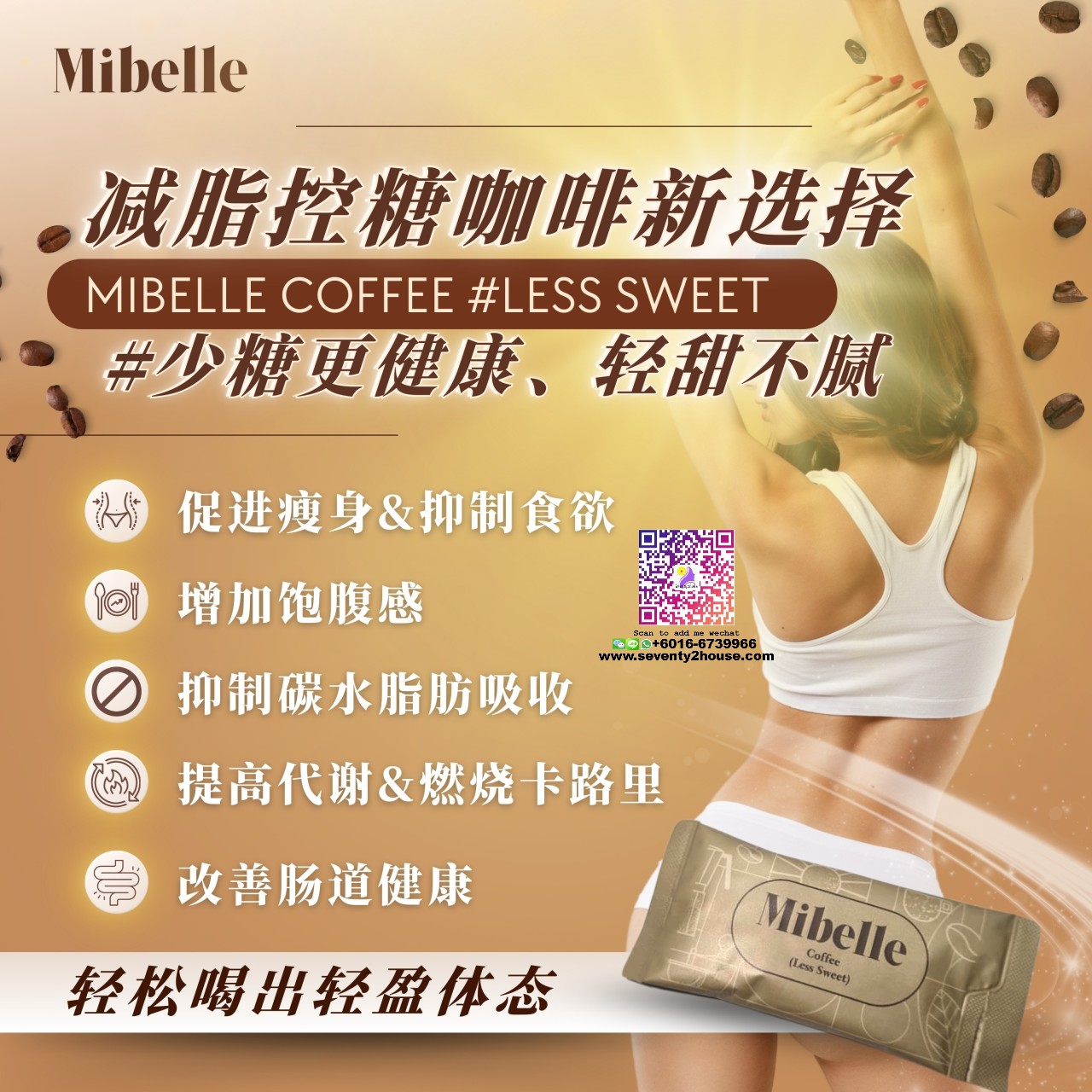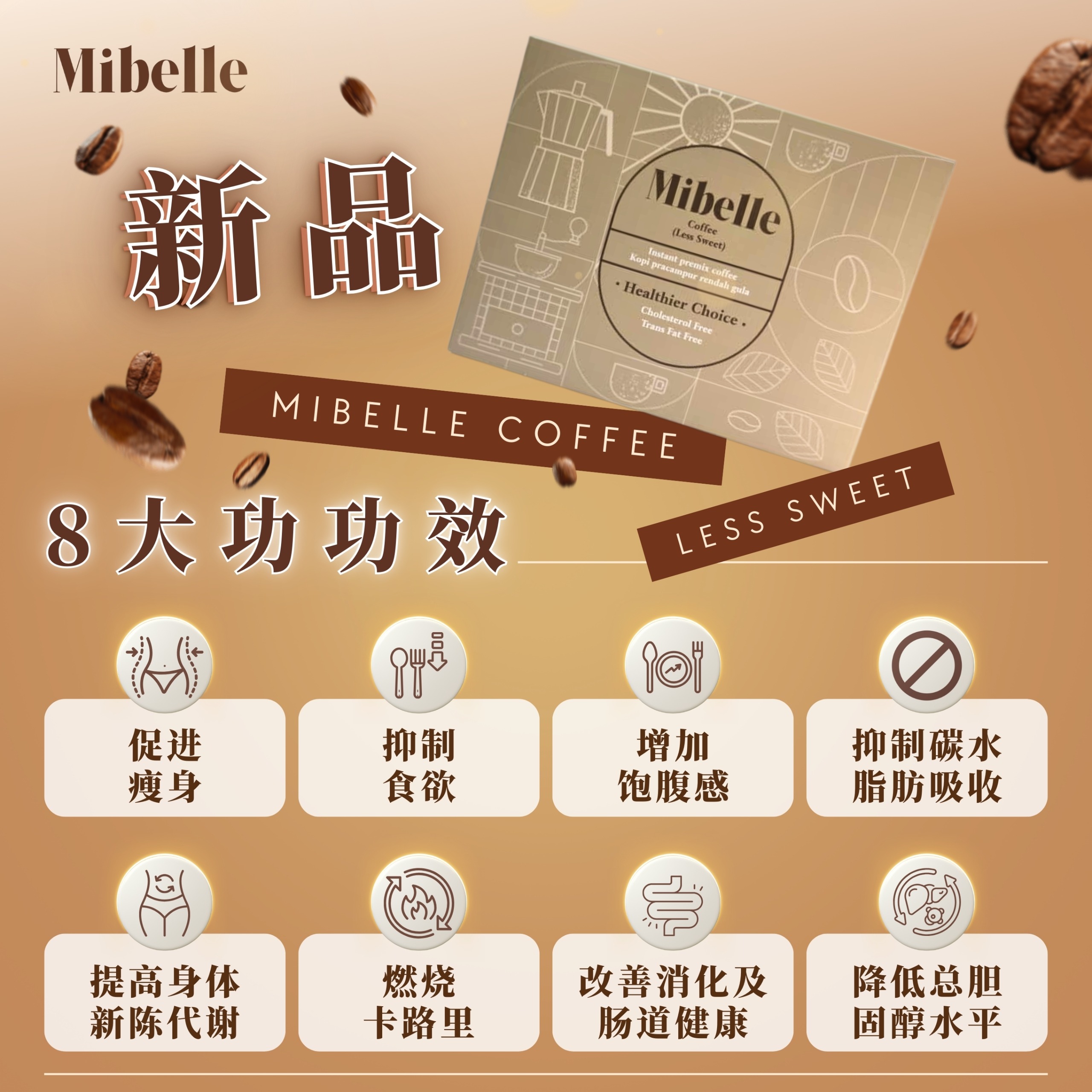 MIBELLE COFFEE SLIMMING (less sweet)(微甜咖啡 - 瘦身咖啡) 20包/盒